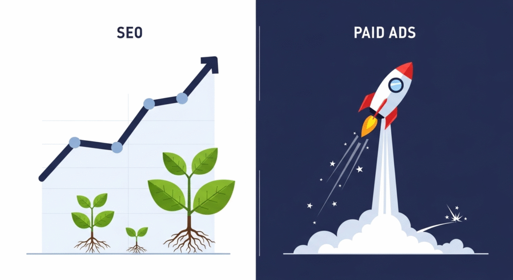 SEO is a long-term asset. Ads are short-term boosts.